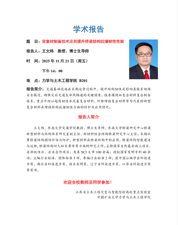 地 点:力学与土木工程学院 B201