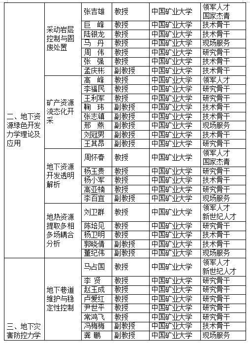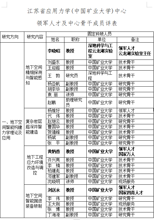 江苏省应用力学(中国矿业大学)中心 领军人才及中心骨干成员详表