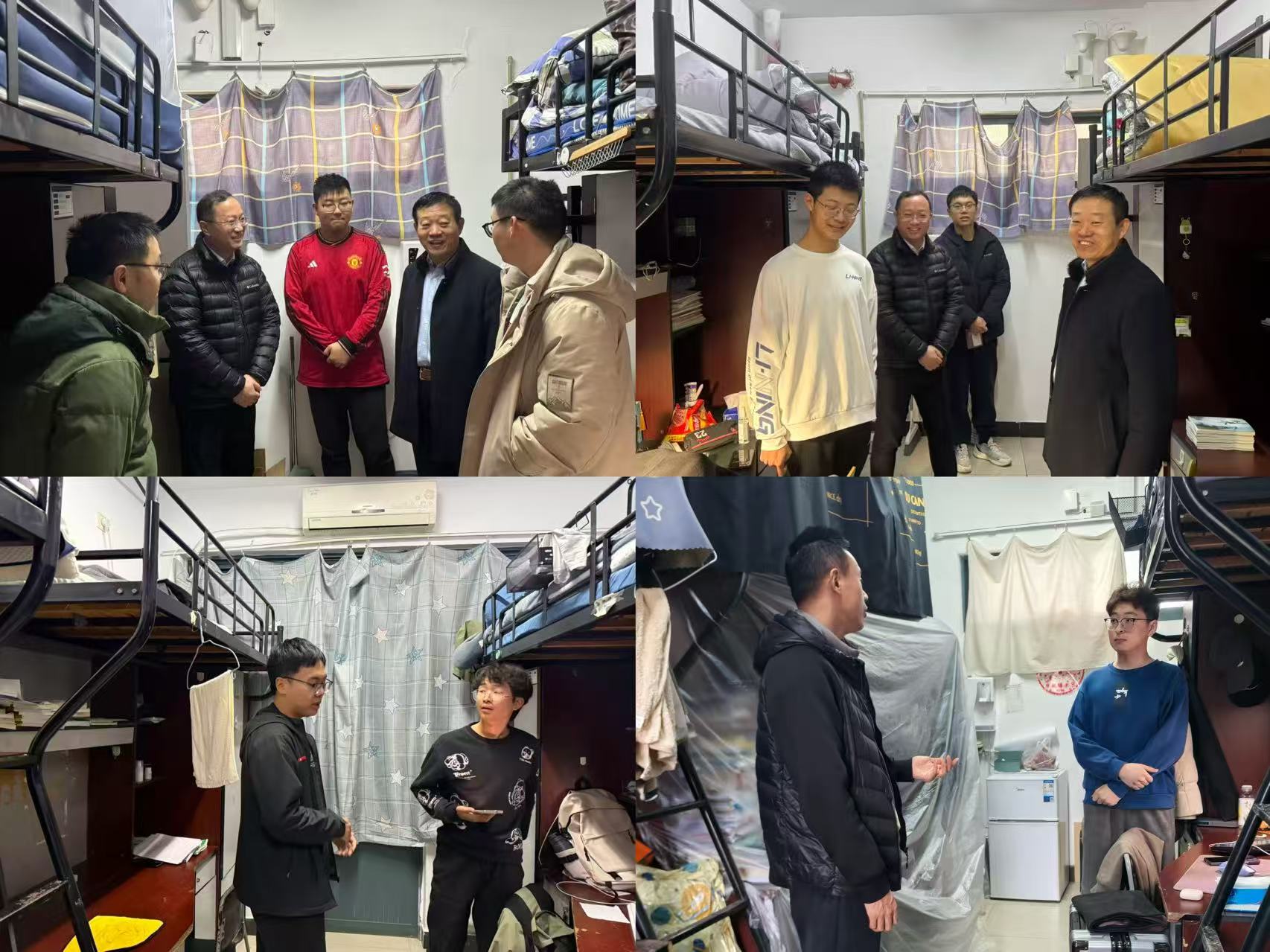 2月28日,新学期工作第一天,学院党委书记马占国、党委副书记纪承、副院长顾正虎带领辅导员深入学生社区,走访学生宿舍及研究生工作室,实地了解学生返校情况与思想动态。