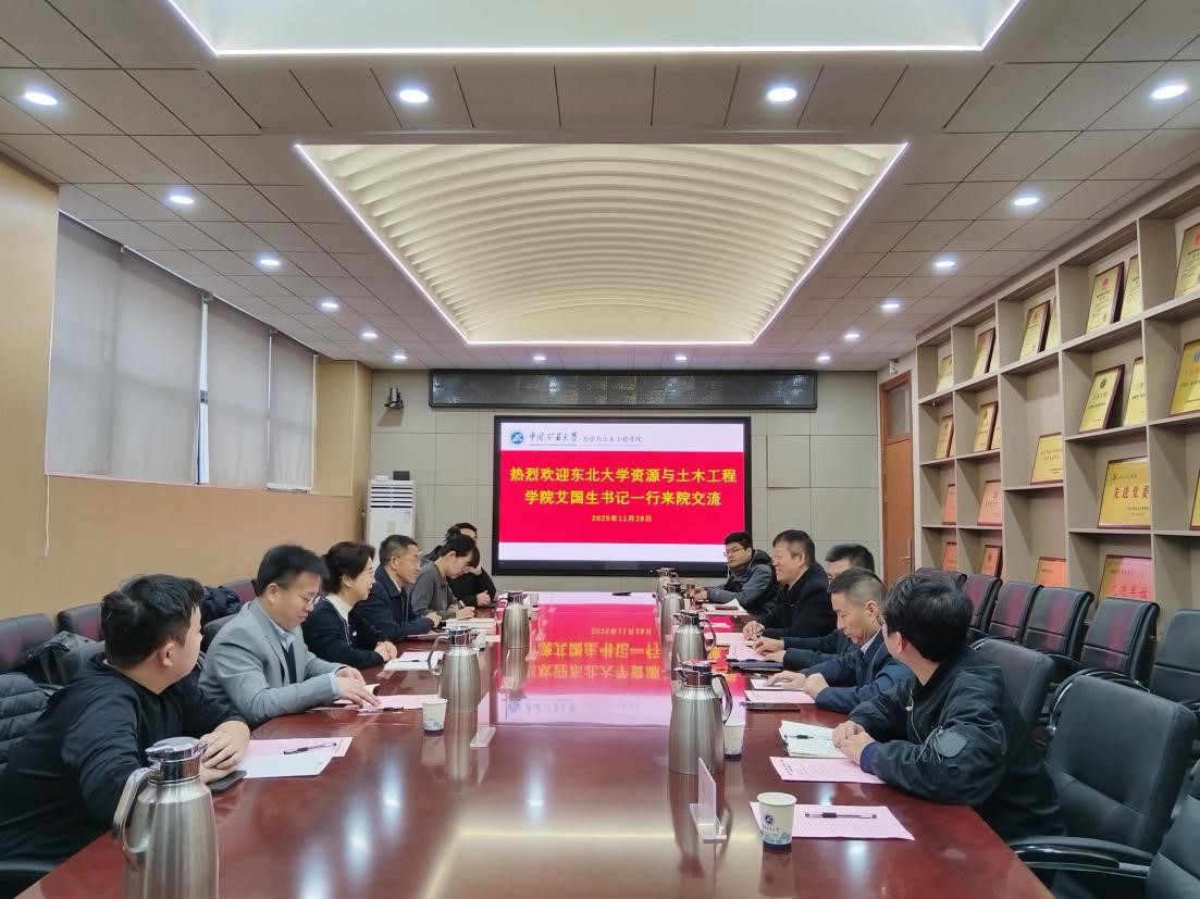 11月28日上午,东北大学资源与土木工程学院党委书记艾国生一行6人来我院调研交流。交流座谈会在学院A220会议室举行,学院党委书记马占国、院长李树忱、党委副书记纪承、副院长张营营与顾正虎等出席座谈会。会议由马占国主持。