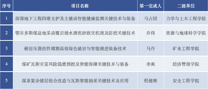 近日,中国煤炭工业协会与中国煤炭学会联合发布《2025年度中国煤炭工业协会科学技术奖励的决定》。我校在本次评选中共有102项科技项目获得奖励。其中,特等奖1项、一等奖23项、二等奖50项、三等奖30项。我校以第一完成单位获一等奖5项,在所有获奖单位中位列第一。此外,由张农教授领衔的“中国矿业大学智能掘进技术与岩层控制创新团队”和程远平教授领衔的“中国矿业大学矿井瓦斯综合防治与高效抽采创新团队”双双荣获“创新团队奖”。
